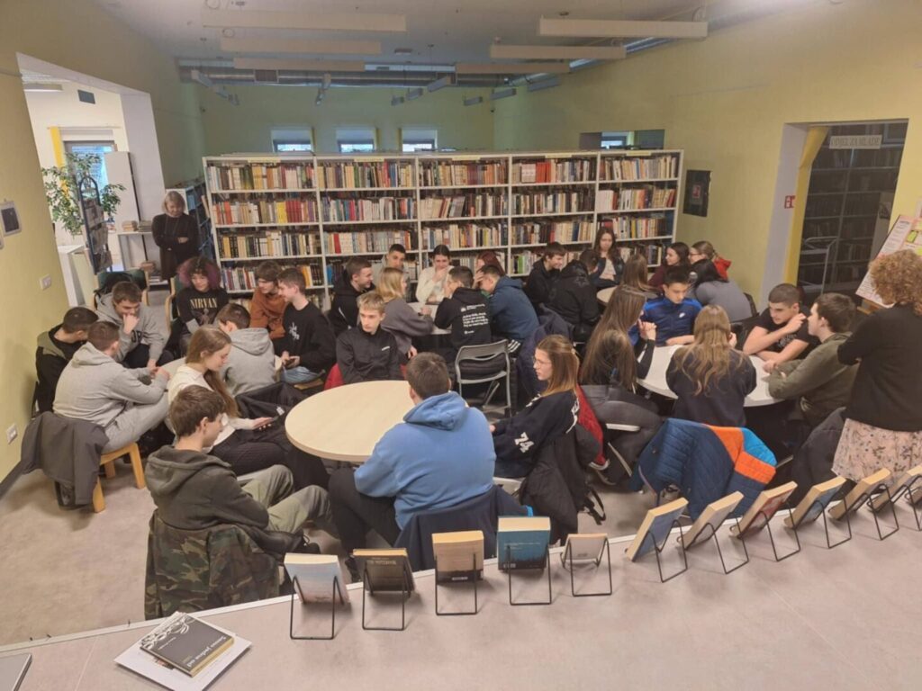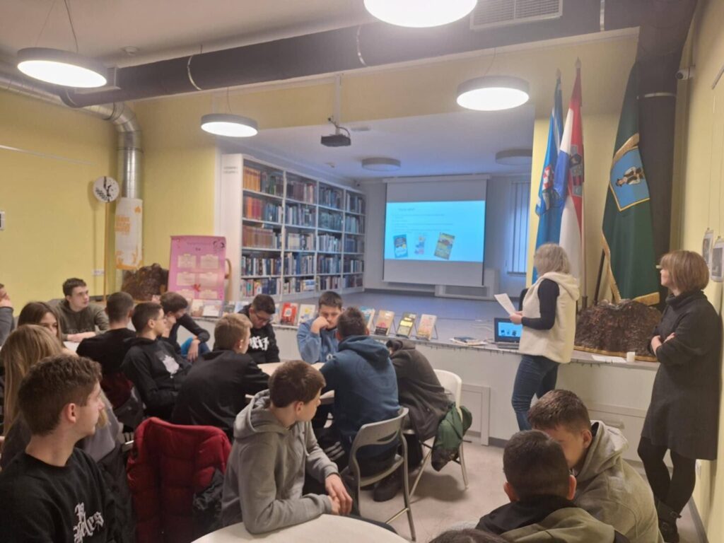 Već desetak godina obilježavamo Valentinovo s našim partnerom Gradskom knjižnicom Janet Majnarich nastojeći raznolikošću spojiti učenje i taj neprocjenjivi osjećaj koji spaja Svijet – ljubav. Ove godine knjižničarke Olgica Klepac Glad i Ivana Pleše upoznale su učenike 1.š i 3.a s antologijskim ljubavnim djelima kroz žanrovski pristup (najpoznatija ljubavna tragedija, pjesma, roman…). Zatim je uslijedio “speed friending” – interaktivna radionica na kojoj su učenici međusobno predstavili jedni drugima najpoznatije ljubavne parove iz (ne)popularnih lektira i iz stvarnog života. Radionica je odrađena uz vodstvo prof. Jasminke Lisac i prof. Ive Kezele Žagar.